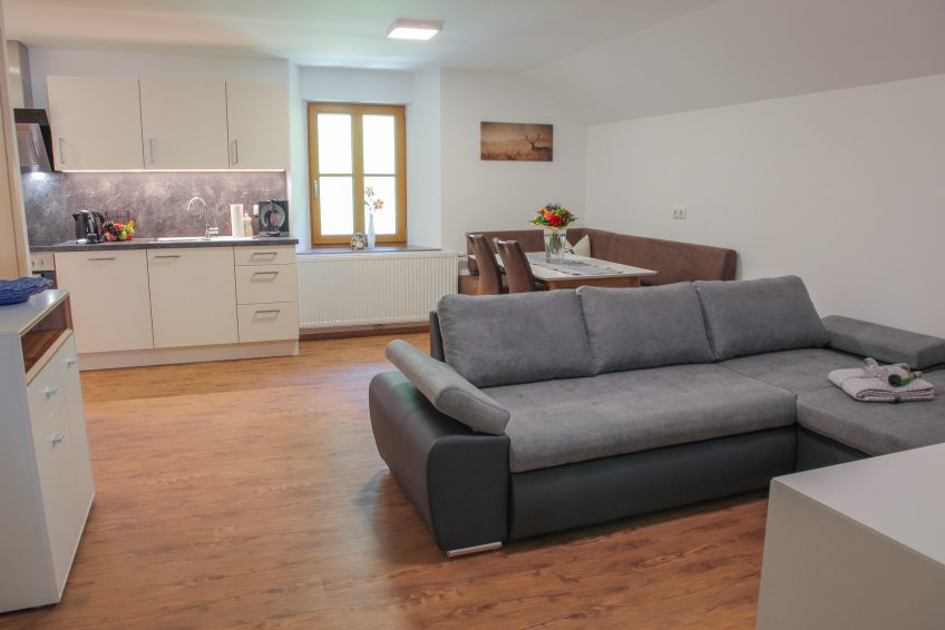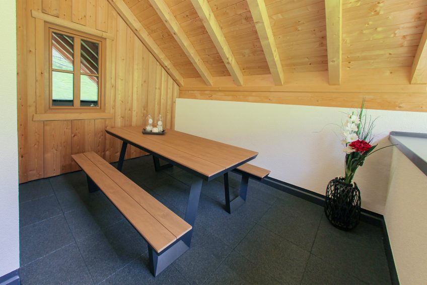 Das besondere an dieser Wohnung ist sicherlich die große Dachterrasse, auf der Sie sich gemütlich an den Tisch sitzen können und Ihren Tag ganz in Ruhe ausklingen lassen können, während Sie Ihren Blick auf die Felder und die Berge schweifen lassen.